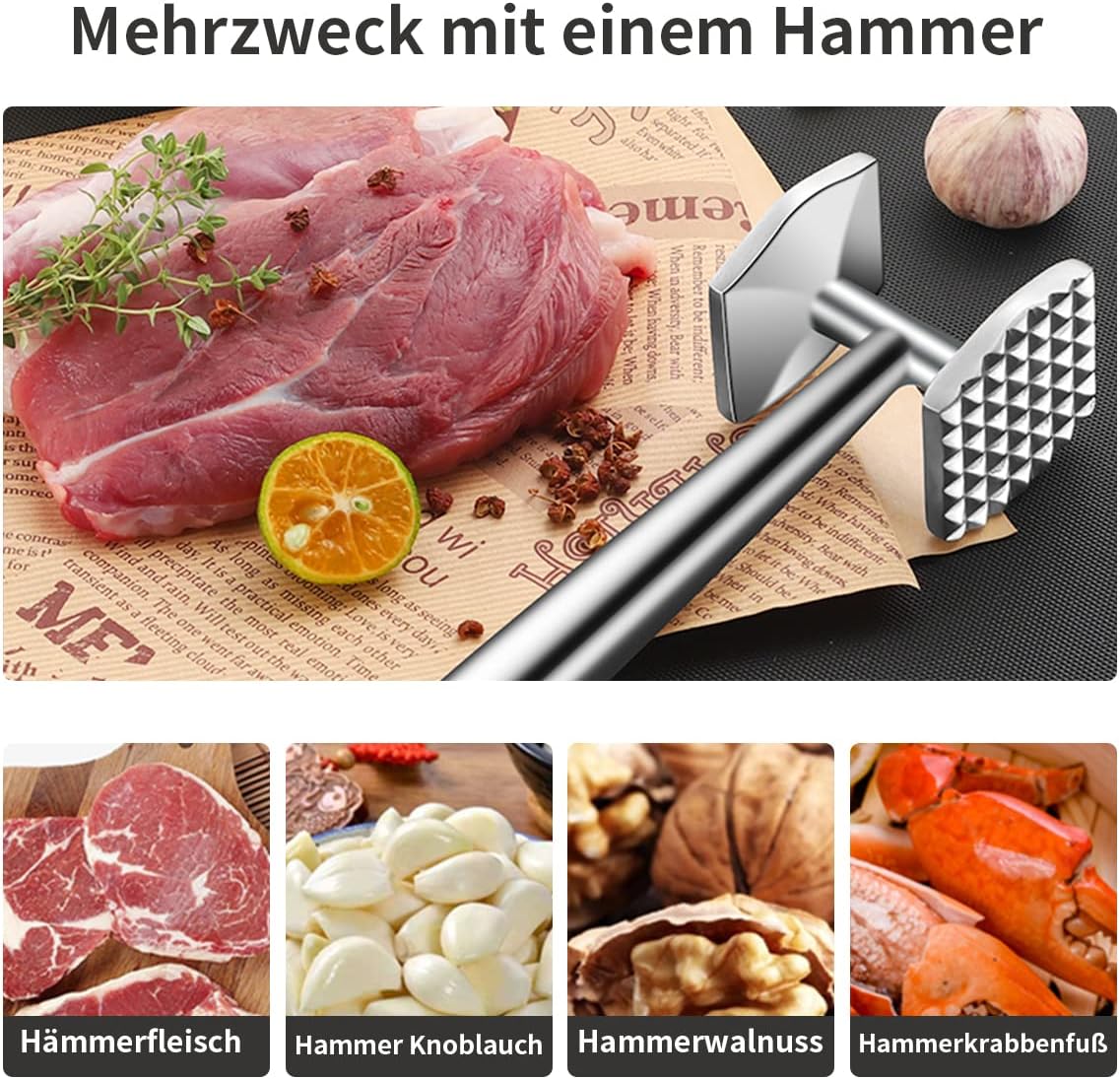 - 【Leicht zu Reinigen】–Unser Fleischhammer hat das neueste Design, einteiliges formteil, perfekte Verbindung. Die glatte Spiegeloberfläche ist leicht zu reinigen, fleischklopfer spülmaschinenfest.