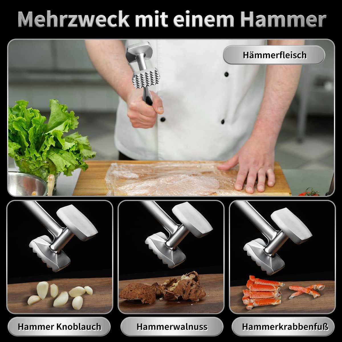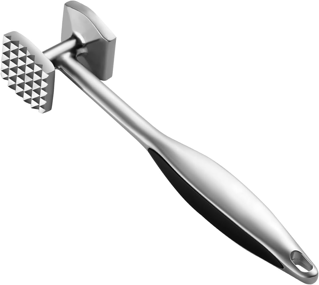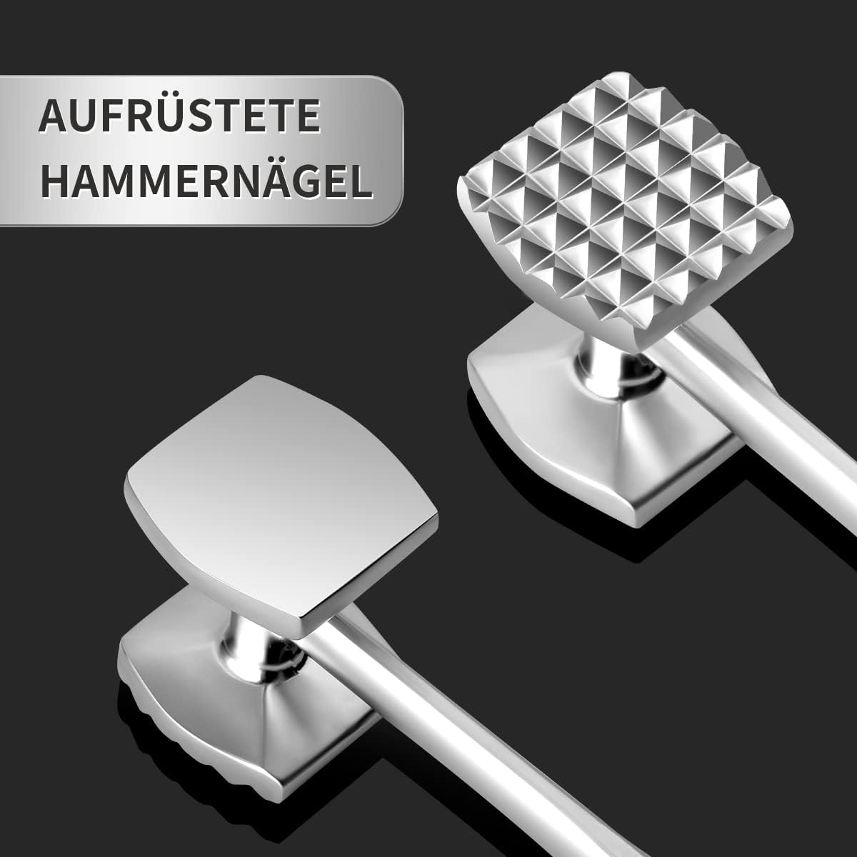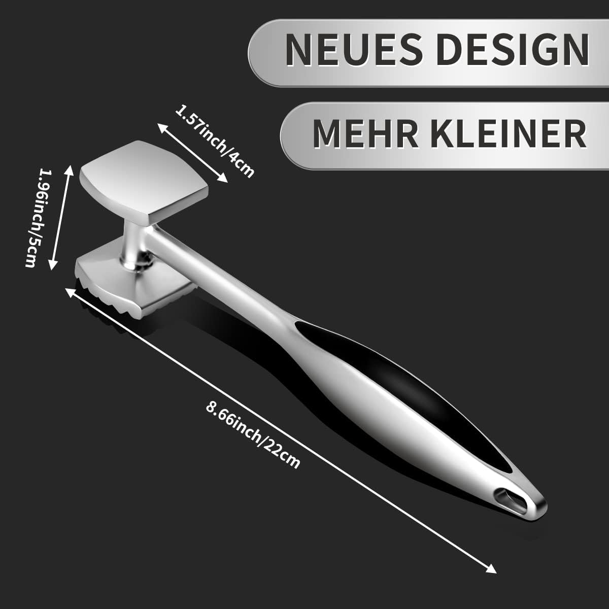 AMOZO Meat Hammer, Zinc Alloy Dishwasher Safe, Double-Sided Cutlet Tenderiser for Cutlets, Chops, Steaks (Meat Hammer 22 cm)
